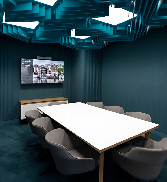 通过将长方形有规律的排列,组成一个立体的天花模块,这一设计思路融合了简约美学与空间构造的创意。这种设计不仅展现了结构上的秩序美,还通过光影和视错觉为室内空间增添了深度与层次感。